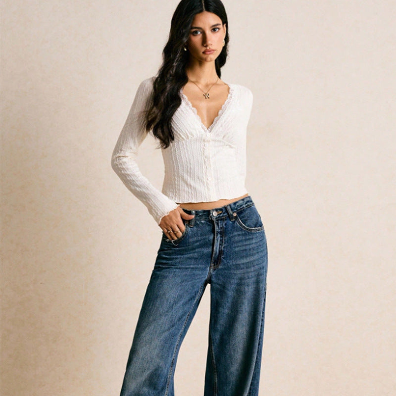 Eleganza Intellettuale – Maglia a Spalle Scoperte con Dettagli in Pizzo