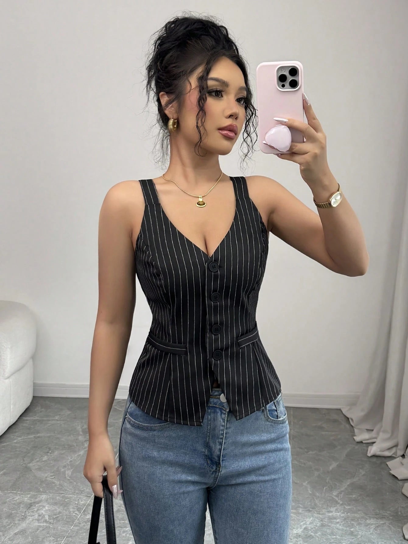 Per l'Estate 2026, astamaestro reinterpreta il concetto di gilet classico, trasformandolo in un capo chiave per la donna che predilige uno stile "Elegant and Elegant". Questo top smanicato è progettato per scolpire la figura con precisione millimetrica, offrendo un'estetica che fonde il rigore del business wear alla leggerezza dei tessuti estivi. Con astamaestro, la semplicità del nero diventa un manifesto di temperamento e classe intellettuale.