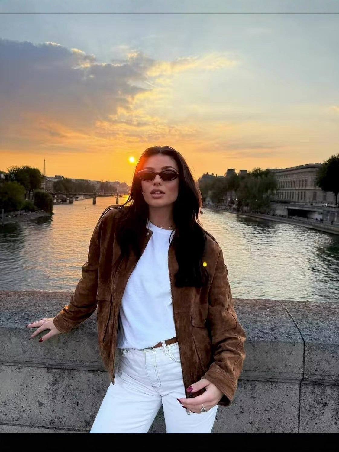 Zip-Up Lapel Design: La chiusura a zip combinata con il colletto a revers unisce il mondo del chiodo da motociclista alla morbidezza del camoscio.