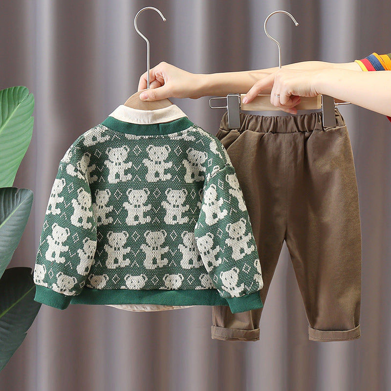 Silhouette "Korean-Style" & Modularità: Il set si compone di tre pezzi coordinati (cardigan, top interno e pantaloni), studiati dai designer di astamaestro secondo i volumi equilibrati del taglio coreano. La chiusura Single-breasted e l'assenza del cappuccio conferiscono al bambino (fascia 1-3 anni) un aspetto ordinato, facilitando al contempo la libertà di movimento necessaria per la fase toddler.