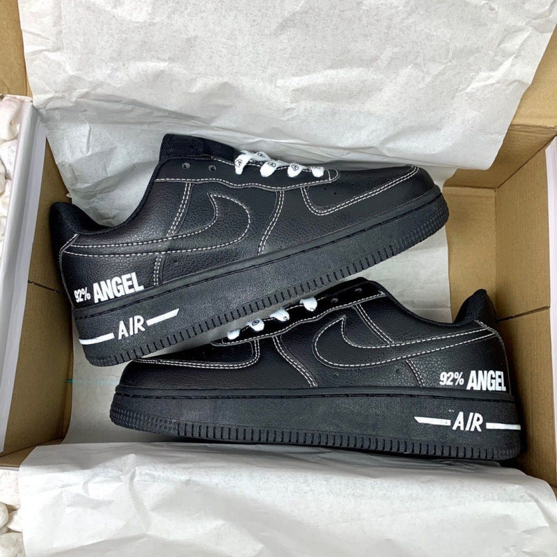 Afferma la tua personalità con una sneaker che parla da sé. Il modello "Angel Spirit" combina un look total black deciso con dettagli grafici provocatori e cuciture bianche a contrasto che ne delineano la silhouette iconica. La scritta distintiva "92% ANGEL" sul tallone aggiunge un tocco di ironia e carattere, rendendola perfetta per chi ama lo streetwear che non passa inosservato.