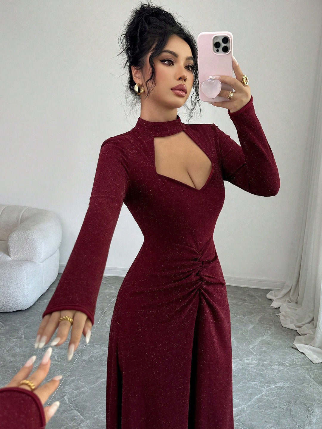 L'incontro tra audacia e texture. Questo abito della linea "Xixi", realizzato con una maglieria tecnica d'avanguardia, incarna l'estetica "Sexy Hot Girl" d'oltreoceano per la stagione 2026, fondendo una silhouette ultra-aderente con un raffinato gioco di pieghe che esalta ogni curva con un tocco di eleganza matura.