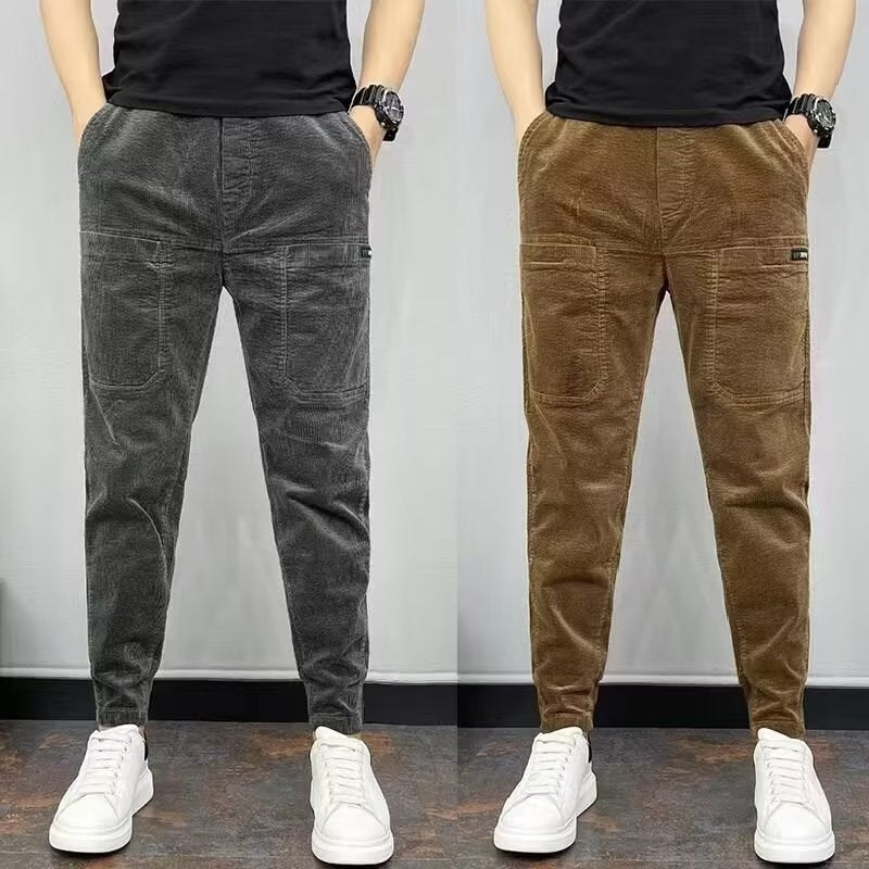 • Corduroy Texture Heritage: Realizzato in un blend strutturato di velluto a coste, questo pantalone offre una profondità tattile unica, perfetta per dominare i feed social con un look neo-vintage nell'autunno 2026.