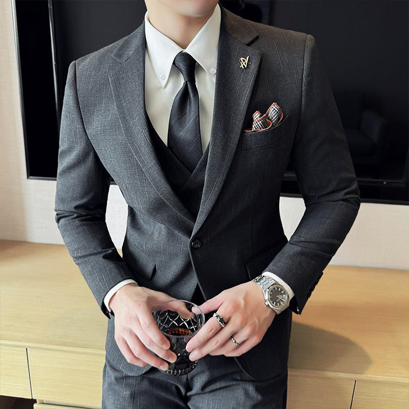 • Sartorial Detail: Arricchito da una patta decorativa (Decorative tab) e una chiusura monopetto a un bottone, questo blazer rappresenta il perfetto equilibrio tra la tradizione delle nozze e la modernità metropolitana.